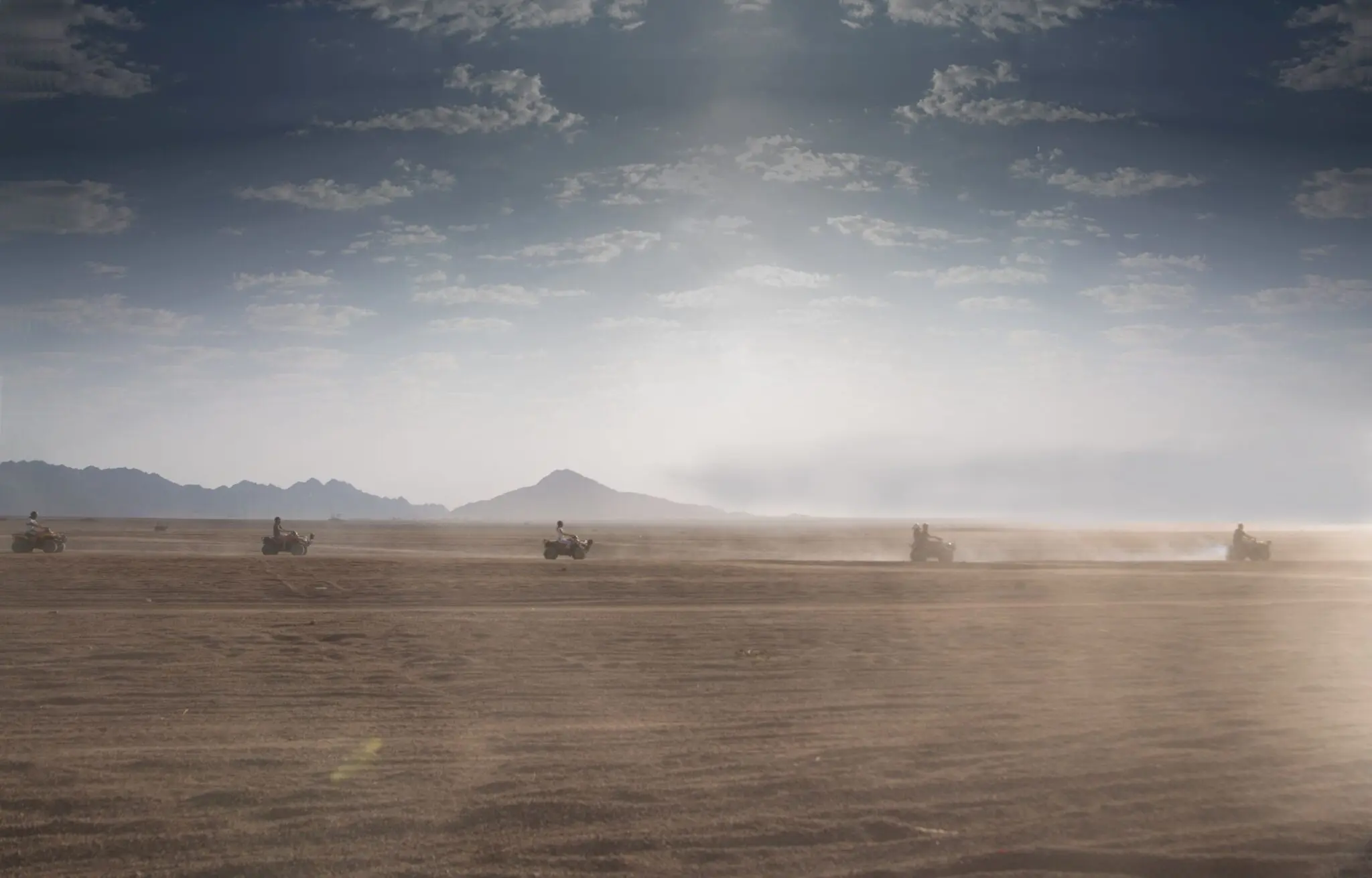 🏍️ Quad Biking Adventure: After a quick safety briefing, mount your quad and speed across the golden sands, chasing the sun as it dips behind the rugged Sinai mountains 🌄💨.